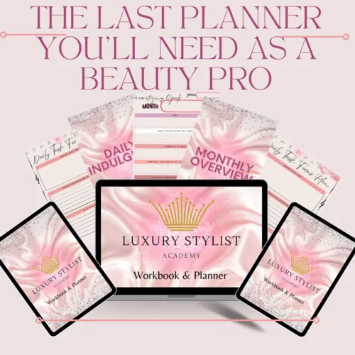A: It’s a 3-month business and mindset planner made by a stylist for stylists. It combines a daily income formula, marketing prompts, expense tracking, and mindset work to help you plan, post, and profit like a CEO — not just a stylist.